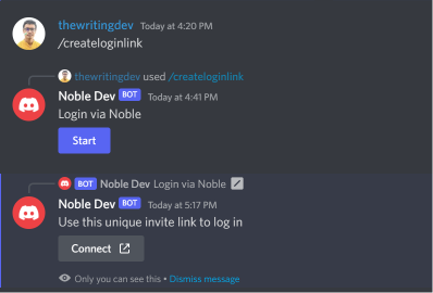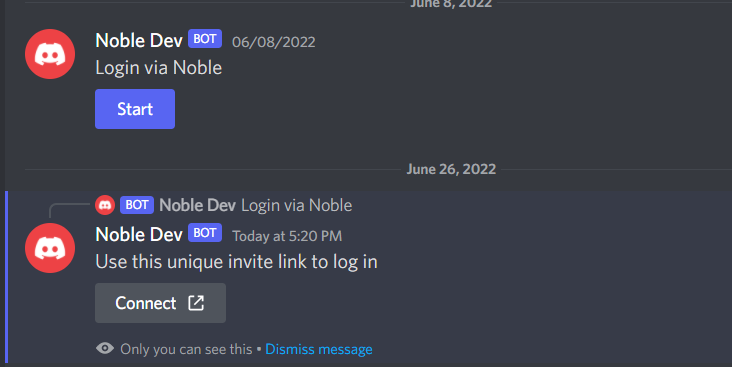 This setup describes how the login button on Noble works. I hope I explained it well, and am able to convince you to create a Discord bot using Discord.JS :)
