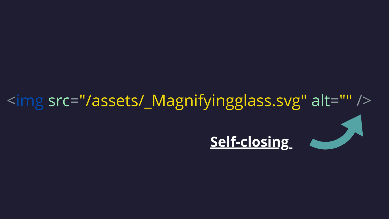 - Self-closing tags (e.g.,
