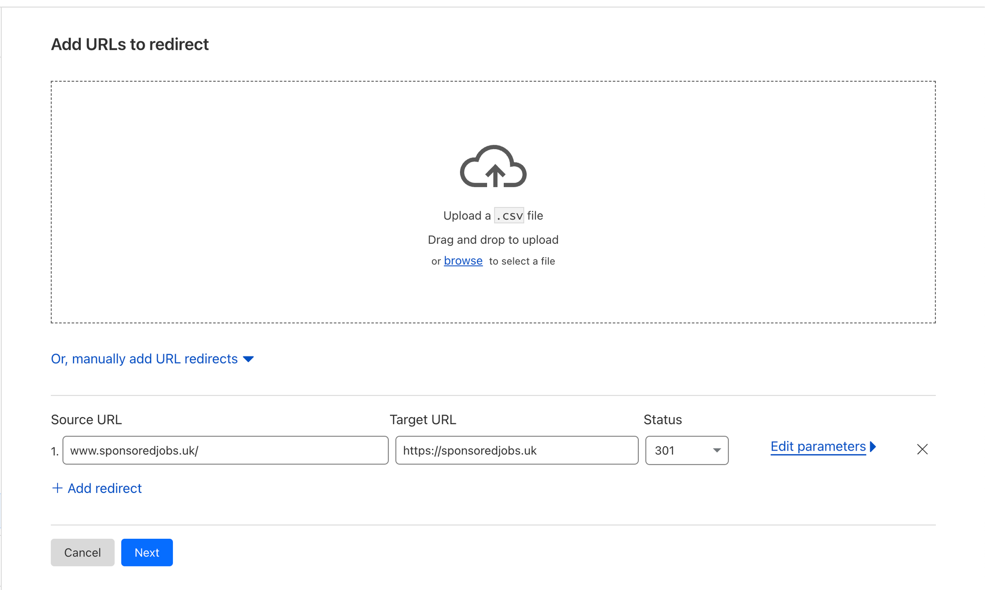 Set up Bulk Redirect List